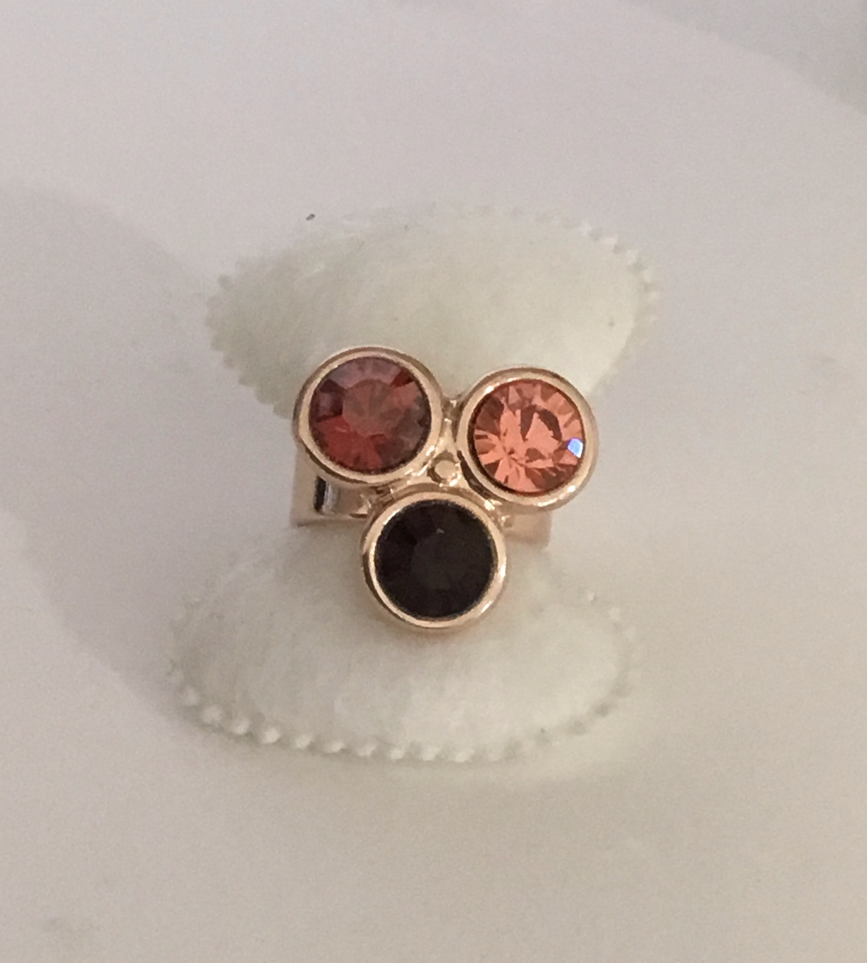 Bague réglable métal doré rose cabochon crystal Swarovski couleur peach,topaz, marron
