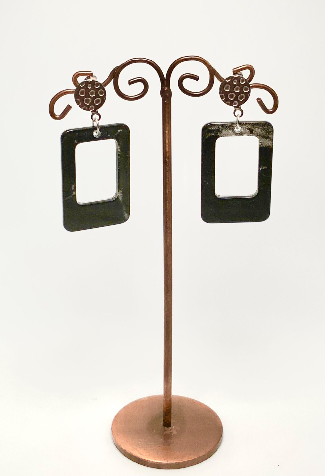 boucles d’oreilles en acrylique noire et grise rectangle clou d’oreille en acier argent
