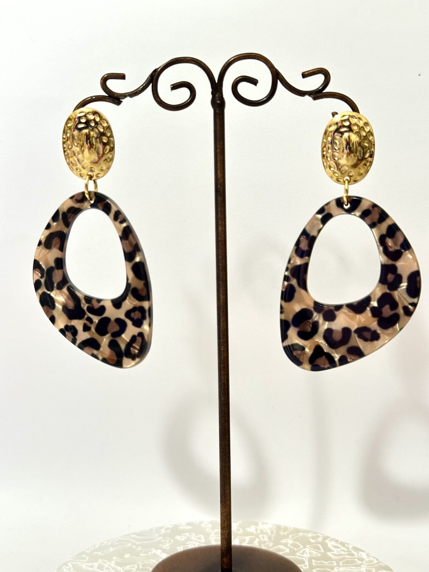 Boucles d’oreilles ovale en acétate léopard