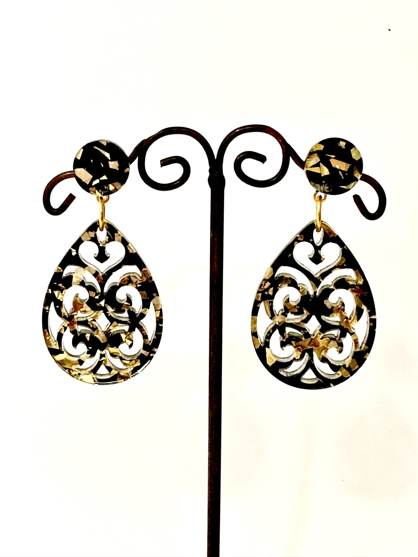 Boucles d’oreilles ovales baroques en acétate noir et or