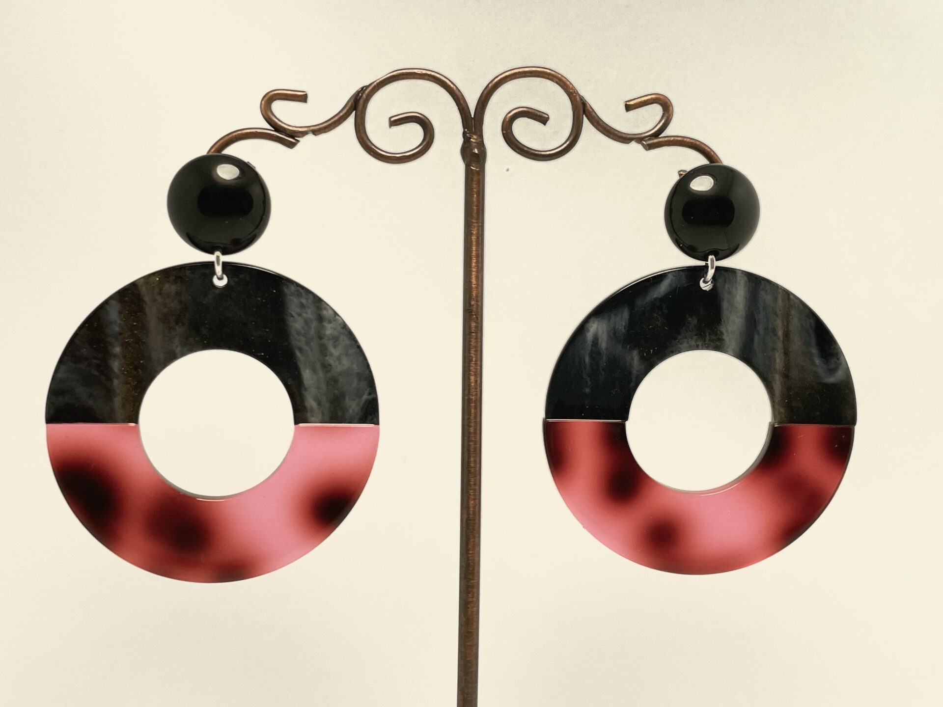 Boucles d’oreilles rondes en acétate noir marbré et rouge