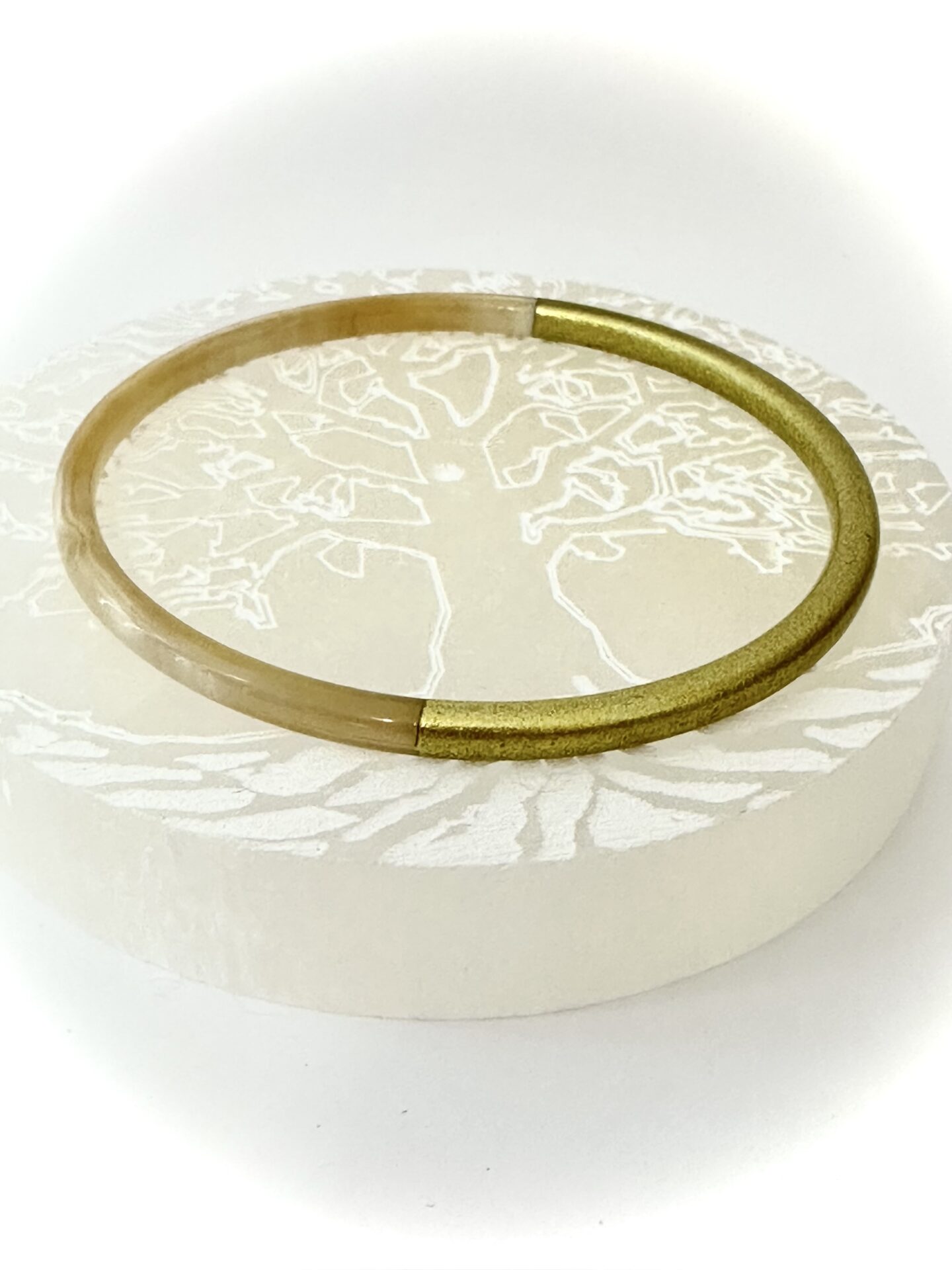 Jonc rond en corne de buffle laquée section ronde 4 mm, moitié 1 couleur or moitié naturelle.